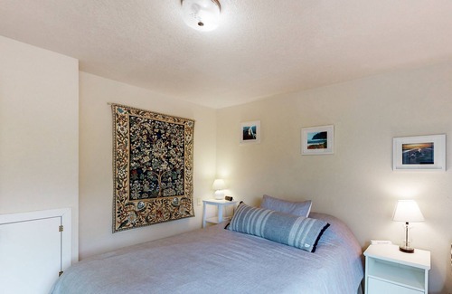 This single-level home has two bedrooms and one and a half bathrooms with an extra shower room. Enjoy your meals and play games with the family in front of the big windows and admire the view of the ocean. Cozy up and relax in front of the electric fireplace and watch the flames flicker in the very comfortable, large, wood-paneled living room with vaulted ceilings. Read your favorite book or gaze at the ocean from a lawn chair while the children play tag or toss a Frisbee on the large open lawn.