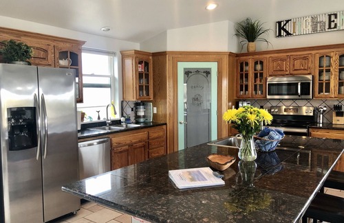 The master Bathroom is spa spacious with a Jetted Tub, Shower and double sinks. The 2nd bathroom has a full tub/shower set up and double sinks. There is also a large laundry room. The mud room entry will allow you to shed any shoes/coats before you enter the upstairs! Please come and have a wonderful time! You won't be sorry. It's a cool house!