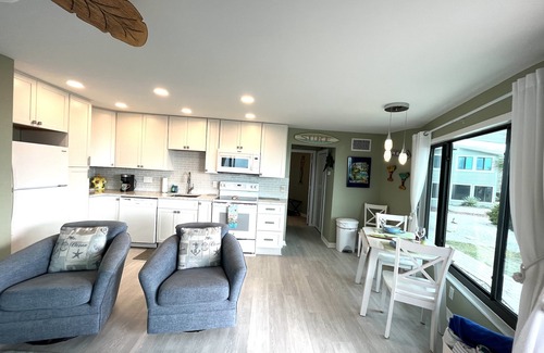 Additionally, there is a fully furnished kitchen and washer and dryer (on the property) for your convenience. Just bring your sunscreen because all beach gear is provided.