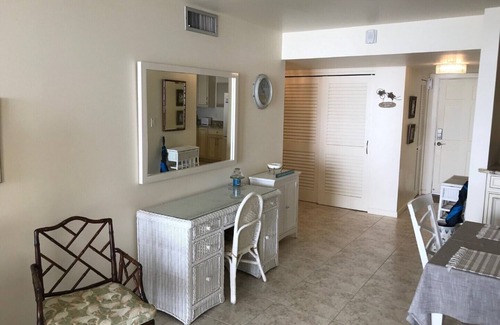 Beautiful condominium right on the beach. Newly renovated and tastefully furnished. Great views from the screened in balcony. This unit is located on the 4th floor and has an awesome view of the beach and the pool. Enjoy your mornings on the balcony watching the sunrise and your evenings watching the cruise ships on the horizon. A perfect vacation spot and home away from home. Fully stocked kitchen and laundry facilities. Private beach entrance, heated pool, tennis court, covered parking, Internet & Cable and close to shopping and restaurants.