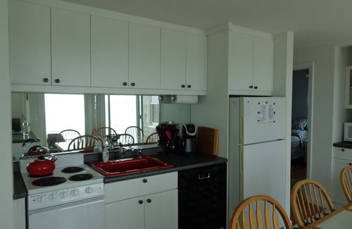 The kitchen has a table to eat in and also a slider out to the patio where we have our grill and waterfront picnic table. We have tried to stock the kitchen with anything you might need pot and pan wise. We have dishes, glasses, flatware and a dishwasher. We have spices, olive oil and some of the basic items you might want/need; a roll of paper towels, aluminum foil, saran wrap, dish & dishwasher soap, and coffee. If you expect to use more paper goods please bring them and leave the cottage as you found it with a roll of towels for the next guests.