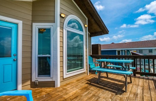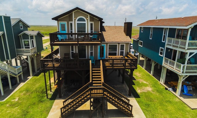 Eagles Nest is a fan favorite with its beach front location, an upstairs private master bedroom, a spacious two-level deck, and unobstructed water views. Enjoy morning coffee from the front decks while watching the sunrise, pelicans flying overhead, and ships entering the port of Freeport.