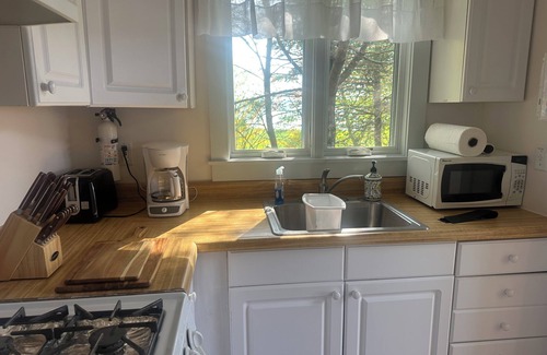 The Cape is located in a beautiful area surrounded by great biking, boating, nature walks and beach exploring. Just down the road you can explore the Holbrook Island Sanctuary where you can take easy hike to see wonderful birds and beautiful lilies in the pond. Visit the 4 seasons organic farm market and the Nearings good life Center. Or just sit by the shore (or inside the cottage) and watch the boats go by- the 4 masted schooners, lobster boats and more. Watch the seals, loons, cormorants and dolphins swim past. This is the cottage that has it all for a great get away.