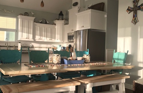 The house has five bedrooms with 11 beds which provide plenty of room to spread out. The house comfortably sleeps 16 people. All bedrooms have 32' TVs with access to tons of movies through free Netflix and amazon prime free movies. Bedroom #5 has a king size bed and attached bathroom. This bathroom has a vessel sink & granite countertop and a 4' shower. Bedrooms 3 and 4 both have newer thicker pillow top queen beds which are slightly higher because of the thickness of the mattresses. There is a step stool if needed for the height. These bedrooms share a Jack and Jill bathroom with granite countertop, dual sinks, linen closet, and a shower. Bedrooms 1 and 2 are bunkrooms but also have full size beds so they can be easily used for sleeping adults. Bedroom 2 has a full bed along with 2 sets of twin bunk beds. Bedroom 1 has a newer pillow top full bed and a twin bunk bed. The hallway bathroom has ADA wide door and has bathtub/shower This bathroom is located right across the hall from Bedrooms 1 and 2.