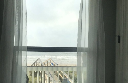 There is a large 10’x40’ covered porch to escape the sun and a 12'x27' uncovered deck to enjoy the beautiful views and sound of the waves. Comfy sectional, teak high table, and 8 Adirondack chairs are on the decks/patio for your relaxation and enjoyment. A private walk over allows easy access from the deck directly to the beach. Under the house there is a shower with hot water for washing the sand off and plenty of parking both on the concrete under the house and in the large driveway. There is a weber gas grill on the deck. Under the house is a picnic table, swing and 2 Adirondack chairs. There is also a ramp that makes it much easier to bring your luggage, coolers, etc. up to the house. The ramp is wheelchair accessible but it is steeper than ADA standards. Guests with wheelchairs have commented that the ramp is accessible for wheelchairs.