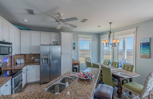 Come on in, kick your shoes off, and relax in the living room on comfy couches. Enjoy a beverage and watch the game on the 55" HDTV, or just soak up the ocean views just outside.
