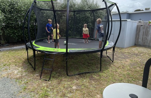 This bach is very child friendly kids toys, full fenced and gated. The property has a 14ft trampoline , foosball and table tennis table. The property is also well fenced and has a lockable gate. Easy access to the the amazing safe Ruakaka beach with cafe and surf life club on patrol. Also there beautiful scenic reserve walk near by. Lots of kids toys and a cool creek on a reserve near by which is good to catch frogs. We have set up a desk and chair in the garage - it’s basic by works as a home office