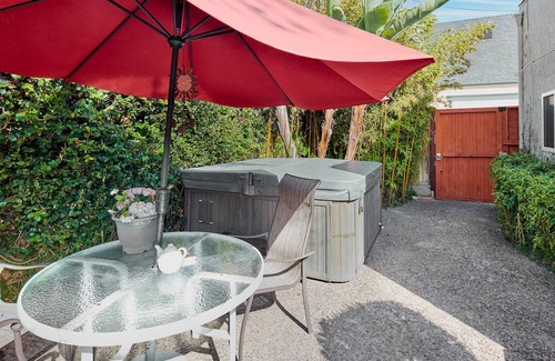 This is a beautiful guest suite with your own entrance by the garden with Jacuzzi. I offer bikes, quiet, outdoor dining, great wifi, and just a 5-minute walk to the beach and town. Boogie boards and chairs too. I offer 5-star accommodations because I know what I would want, clean, quiet, and convenient. Welcome!