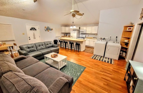 After a day of excitement, return to your private sanctuary and unwind in style. Sip cocktails on the spacious patios as you watch the sun dip below the horizon, or gather around the fire pit for cozy evenings under the stars or enjoy yourselves in the large fenced-in private yard, which was intentionally designed for your kids to play!