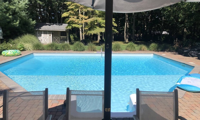 Beautifully appointed beach house cape in the heart of Long Island's North Fork wine country. Private gorgeous landscaped yard with large built in pool and pool shed. Located on a quiet street. 1 block to Peconic Bay, 2 miles to quaint Love Lane in Mattituck NY.