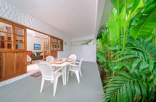 The 2-bedroom, 3-bath Lower Reef House is the fourth building from the entrance and the second from the beach, affording guests close proximity to the beach at a garden-view price. Surrounded by cool, tropical vegetation, the main porch and both bedroom patios offer a relaxing space to unwind. With a master bedroom having a king size bed and a second bedroom with 2 double beds and en suite bath, this apartment is another great option for friends or family traveling together. WHERE WE ARE LOCATED We are located approximately 2-blocks south towards the West End Cliffs from the Times Square Mall and the Bourbon Beach where the Knutsford Express shared bus service from Montego Bay (their Negril drop off depot). Taking a cab to Negril or using GPS offline navigation, we are opposite of the Negril Gym for a reference point. You will see our BH sign under a small thatched roof on the beach side of the boulevard. Garden View.
