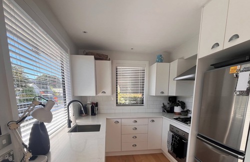 This beautiful sun drenched home is only six years old & right on the Coastal walkway. This is a smaller, sunlit open plan modern fun home.. A 30 second walk takes you to a small reserve with seating right on the ocean. Located in a quiet garden setting, & with large bifold doors opening onto a sun drenched deck.. It’s again a 30 second walk to the local shops & cafeś