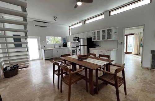 The house has three bedrooms with ensuite bathrooms, and gorgeous views from both levels of the home. Enjoy the infinity edge pool with ocean views—perfect for a sunset cocktail