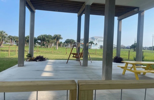 New construction, 3 bedroom 2 bath beach home, sleeps 8, nestled between the bay and the beach for beautiful views. Short 2 minute golf cart ride to the beach in a family friendly neighborhood. Gorgeous sunsets!