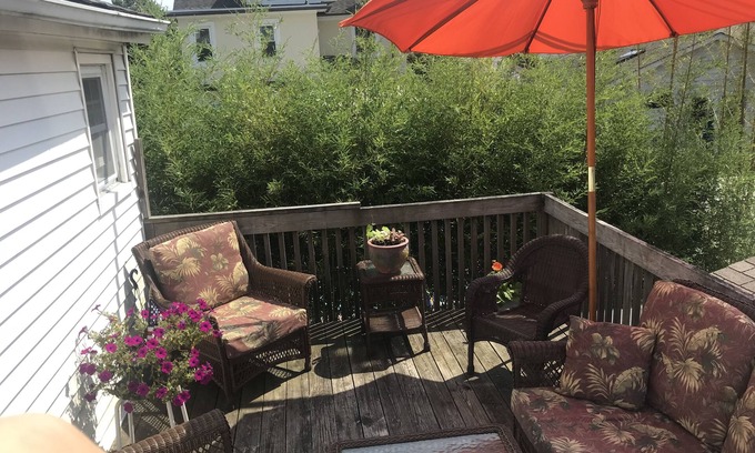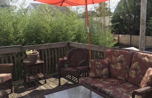 Lovely 2bedroom, off street parking, 1 1/2 blocks to the beach, beach badges, short walk to shops, train, and shops.