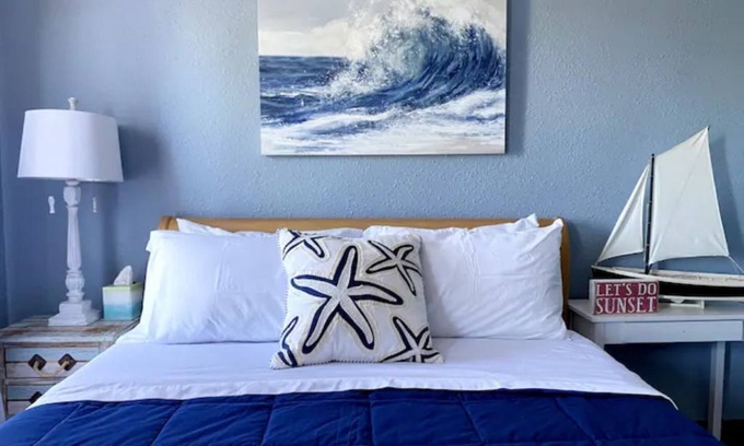 2 min driving to the beach. 4 minutes driving from downtown. walk to south pier/Blue Harbor Resort 15min.