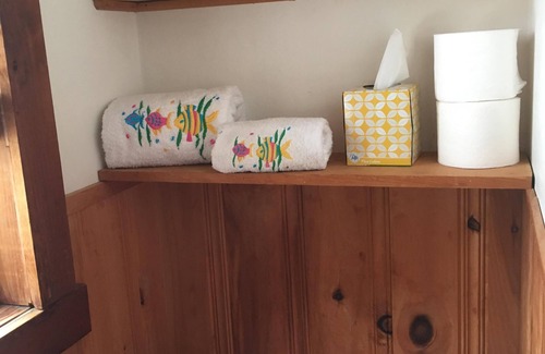 Nestled on the second floor, our cozy Coach House exudes beachy charm with its knotty pine walls, wood floors, and open-concept design. Ideal for up to 4 guests, it includes a queen bed in the bedroom and a pull-out couch in the living area. Features include: