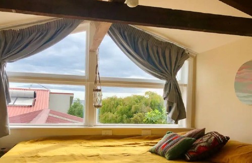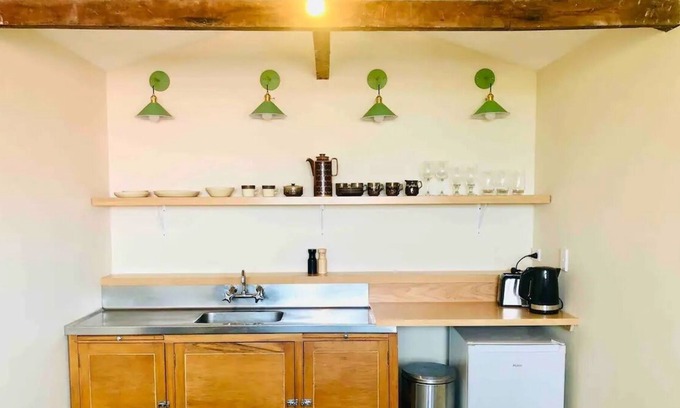 The potters studio is a single room bed room and kitchen. The bed is raised up so you can see the view and is accessed via a small ladder. This may be difficult for those with mobility issues. There is a couch and small basic kitchen area in the studio.
