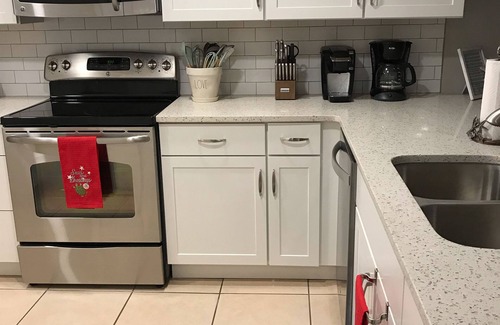 This condo is fully equipped. Kitchen is ready for any chef or the traveling cook. The bedrooms have comfortable beds that can sleep 6 people. WiFi is included. Dining room has seating for 6 as well as seating at the breakfast bar. The living room is well equipped with lots of seating, TV and lamps for reading. King bed in master, 2 full beds in guestroom, 1 twin and 1 queen air mattresses also available. Walk in shower in master, tub/shower in guest bath.All linens are provided, blankets, sheets, pillows, bath and beach towels.All the beach supplies you need are in the closet waiting for you. Chairs, umbrellas, games, sand toys. Tennis rackets and balls, and Pickle ball rackets and balls are available for the on site tennis court. Come to Cocoa Beach and leave your worries and stress behind.