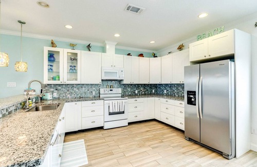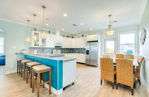 But the real highlight of this beach house? The multiple decks that offer the perfect vantage point to soak up the sun, sip your morning coffee seaside, or simply unwind with a refreshing cocktail. Whether you prefer basking in the sunshine on the sun deck, enjoying alfresco dining on the covered deck, or escaping the bugs in the mid-level screened-in porch, there's a spot for every mood and occasion.