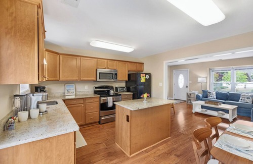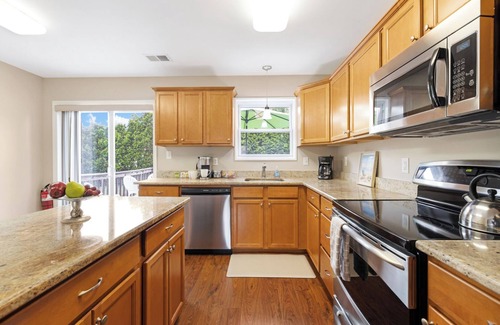 You will immediately feel at home when entering this 3-bedroom 1 bath rancher with all the conveniences you need. The living room has a very comfortable sofa and love seat with seating for 6 + to socialize or watch the wall-mounted TV with Roku, which is ready for streaming. The fully equipped kitchen has granite counters, a stainless steel range with a convection oven, dishwasher, refrigerator with an icemaker, microwave, dishes, pots and pans, Keurig, toaster oven, drip coffee maker, toaster, utensils, mugs, glasses, and more. The kitchen table seats six. The back deck and fenced-in backyard, for your under 50-pound dog, are perfect for you to relax outside with your morning coffee, happy hour, or stargazing in the evening. There is also a grill in the backyard for those who like to dine alfresco and enjoy the fresh air. Also in the backyard is an outdoor shower, refreshing after the beach and to enjoy into the fall, which we love to do.