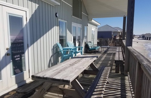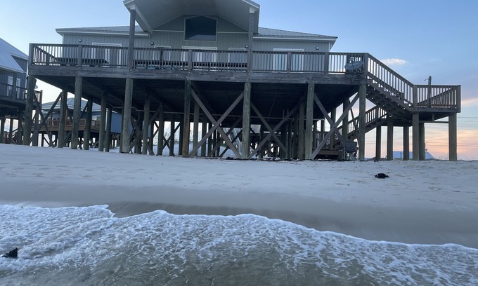 Our ocean front property is a comfortable and roomy 5-bedroom, 5-bath home with unobstructed views and within only a few steps from the warm, inviting sand and water of the Gulf of Mexico. You can count on spectacular sunrises and sunsets from the property's porch in the aptly named "Sunset Capital of Alabama". The serenity of Dauphin Island is truly the Gulf’s best kept secret.