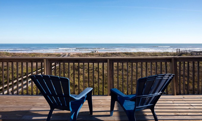 Cozy beach house gulf front with direct and visual access to the beach. This house has large patio deck. Sleeps 10 Comfortably. Two full bathrooms & half bath with outdoor shower. One bathroom with a shower the other with a tub. Good for couples trip, romantic getaway and families with children.