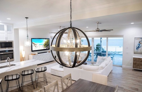 Located directly on Fort Myers Beach, this new build, beachfront house is a dream with beautiful Gulf of America views and spectacular sunsets. Our house is perfect for couples or families. The house comfortably sleeps up to 10 people with 5 bedrooms, including 3 king beds, 1 queen bed, and 1 twin bed, our tremendous property offers ample space for guests to relax and unwind. The 4 full bathrooms are equipped with showers and hair dryers for your convenience. There is a 1/2 bath on the main level as well. Walk right out onto our sundeck with our beautiful elevated pool. Enjoy our in-pool lounge chairs or our deck loungers. There is a large covered area for dining and a seating area for relaxing in the shade while still enjoying the beautiful views and breezes. Whether you're lounging in the cozy living room or floating in the sundeck pool, our property provides the perfect home away from home. Enjoy the picturesque sunsets, the calm beach waters and sounds of the waves and ocean. Watch dolphins play, collect seashells in abundance, revive the mind, body and soul.