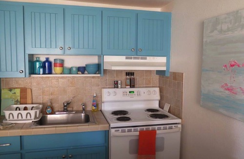 This caribbean style studio apartment is located directly on stunning Coral Beach. The apartment is fully equipped with a daybed that can be set up as a King size bed or two twin beds. There is also a double size sleeper sofa for one additional person. There is a three piece bathroom and an additional vanity outside the bathroom. The kitchen includes a full size fridge, stove and microwave. There is a terrace for your enjoyment as well as several communal terraces with ocean views on each floor of the building. We supply beach chairs, towels and a hammock so just bring your bathing suit and get ready to unwind at the beach. There's a pool and restaurant on site with free WIFI access as well as WIFI in the unit. Fifteen minutes walk down the beach you will find the lively town of Port Lucaya where you will find great shops and restaurants. For your convenience, Solomon's Grocery and the Italian Specialty food store is a short 5 minute cab ride from the condo. No pets allowed. For more information on this property and other vacation rentals visit, connectionsvacationrentals.com