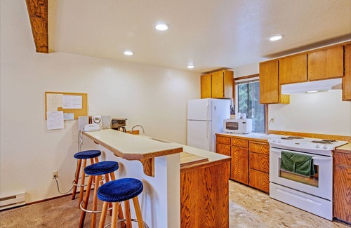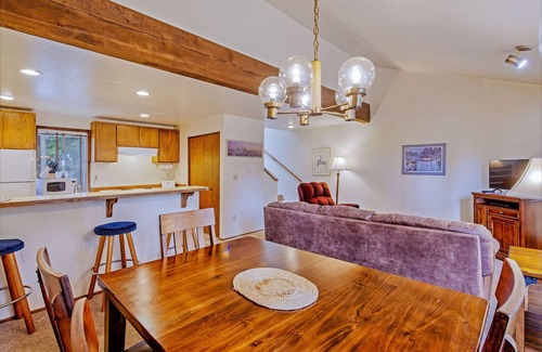 In good weather, kick up your feet on the deck just steps away. Take advantage of the small, but well-equipped kitchen to cook your meals or just serve some takeout from the many great restaurants nearby.