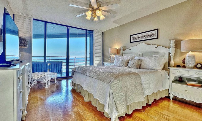 Dreaming about the perfect beach getaway? Begin your day with breathtaking sunrises from your spacious balcony overlooking the Atlantic. Unwind in the luxurious property with its floor to ceiling views of the beach in both the family room and master bedroom. Oversized sliding doors frame captivating views of brilliant blue skies and shimmering water, as you relax in your stylish sanctuary after a full day of exploring. This beach treasure offers both form and function with coastal charm, plenty of room, both a dining area & eat-in kitchen, fully equipped kitchen, large master bedroom showcasing a tub, vibrant 2nd bedroom, a garage with all kinds of beach toy, and a complex with resort-like amenities! Owned and outfitted by Jeff and Gina, this property overflows with their signature coastal chic design and attention to even the most intricate details. Look at the pictures and see why this 5-star property keeps guests come back. Stop just dreaming and book now why it's still available!