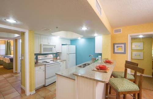 Indulge in the comfort of our spacious two-bedroom villas, featuring fully equipped kitchens, separate living rooms with sleeper sofas, dining areas, washers/dryers, furnished patios or balconies, and free Wi-Fi. Unwind in the garden tub of the master bath and enjoy a restful sleep in the king-sized and double-sized beds. With a maximum occupancy of 8 people, our villa is perfect for families and groups.