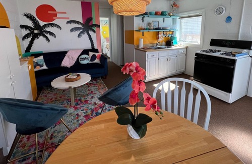 Unwind at this vibrant beachfront bungalow resort! Enjoy the serene sunset views and the warm sand between your toes on the property’s 150 foot private beach. This Palm Springs inspired bungalow (#6) is located between the buzzing towns of Caseville and Port Austin, where the fun never ends! The waves 🌊 , the sun ☀️, and the fun is all that awaits.