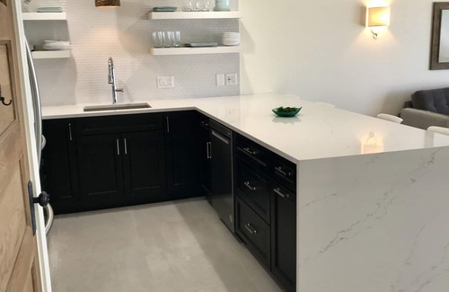 B303 has keyless entry, thus no key to pick up or worry about. USB outlets in several key places for convenience. Free WiFi. Smart TVs with Cox Cable in Living Room and Master Bedroom. Sleeps 5. King size bed in Master Bedroom, bunk area in hallway and sleeper sofa in Living Room. Large Master Bathroom with glass door shower, full Guest Bath with shower/tub combo.