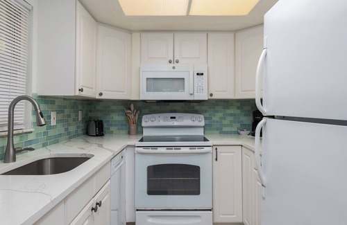 This cozy 1st floor two-bedroom, one-bathroom Casey Key condo rental welcomes you and your vacation crew! Featuring a king-sized bed in the master bedroom, 2 twin sized mattresses in the 2nd bedroom and a convenient pullout sofa in the spacious living room, it can accommodate your 6-person vacation squad effortlessly. The fully-equipped kitchen, complete with a stovetop and range, provides the perfect setting for culinary adventures, making you feel right at home. The private beach view gives you an amazing vantage point for our famous gulf coast sunsets!