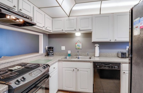 Inside, the condo is designed with comfort in mind. The spacious master suite features a plush king-size bed, a private en-suite bathroom with a walk-in shower, and plenty of space to unwind after a day in the sun. The second bedroom offers a cozy queen-size bed, perfect for additional guests or kids, and is across from the second bathroom, which includes a shower and tub combination for a relaxing soak. The bright and airy living area is the ideal spot to kick back, with comfortable seating and a welcoming coastal vibe. The new pullout sofa bed rounds out sleep accommodations to total six. A fully equipped kitchen makes it easy to prepare delicious meals, whether you're cooking up a fresh seafood feast or whipping up snacks for a beach day. 314 is conveniently located near the elevator and laundry room.