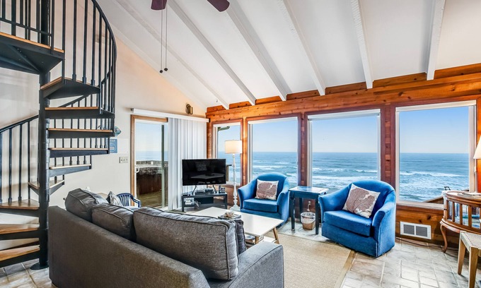 From this recently renovated Oceanside vacation rental, you'll have spectacular 180-degree, unobstructed ocean views all the way from Cape Lookout to Netarts Bay! This dog-friendly Oceanside escape also features a private hot tub and a beachfront deck. This rental is the perfect spot for family getaways or small group retreats.