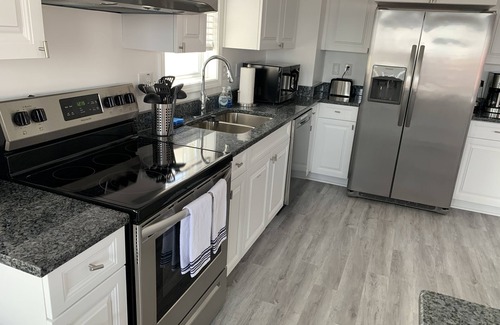 The master bedroom has a king size bed with comfy memory foam mattress and 43 inch Smart TV. The newly updated large master bathroom has a rain fall shower, large bath tub and an extra vanity. The second bedroom is roomy with a queen size bed, memory foam mattress. The third bedroom has a bunk bed with 2 full size memory foam mattresses and a large bean bag to lounge in. The newly renovated hallway bath has a double vanity with stand up shower.