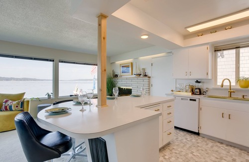 Discover the allure of the Pacific Northwest at this historic 4-bed, 2-bath University Place vacation rental on Day Island! This home on Puget Sound offers a patio, a backyard, and a grill for cookouts. Tee off at Chambers Bay Golf Course or take a day trip to Olympic National Park. Return home to relax by the fire pit and take in the views!