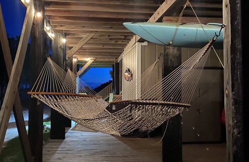 If you are looking for a quiet tropical island to relax and unplug, LGI is your dream spot! This 2 bedroom home has a king bed, queen bed, full bed, and a pull out couch to accommodate any family comfortably. Everything you need is here, just bring your swimsuit and fishing pole. Full kitchen with all cooking utensils, microwave, toaster, keurig, central air, remolded bathroom, outside shower, washer/dryer, charcoal grill ready on the bottom deck, plenty of hammocks to relax. Beach chairs, umbrella, beach towels all provided. Golf carts available to rent from the golf cart shop on the island to tour the island and go to and from the dock.