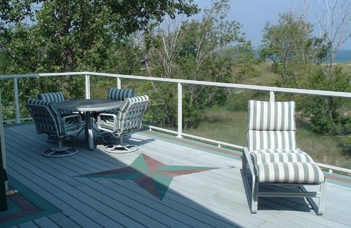 2 Night Minimum. Welcome to the “Miami,” Sheridan Beach’s lakefront apartment with hot tub, ( OPERATING ALL YEAR ), Jacuzzi, steam room, and panoramic views of the dunes, surrounded by wilderness, beach, and Michigan City’s famous Lighthouse. There is nothing between you and the fine, sandy beach except a short "3-MINUTE WALK" down the footpath through the sand dunes to the lake. Beach chairs are provided. The sand is so fine that when you drag your feet, it actually squeaks. Open either the six French doors in the living room to access the hot tub or the four French doors in the bedroom and step out onto the expansive deck or stay inside and listen to the soothing sounds of Lake Michigan’s surf ( when the waves are up) and the songs of the crickets in the dunes. Let the sounds lull you to sleep. The master bedroom features a king-size/four-poster bed; and an additional queen-sized hide-a-bed with an extra 3-inch foam mattress topper. This is a 5-star accommodation at an awesome, natural 5-star location. Pets OK.