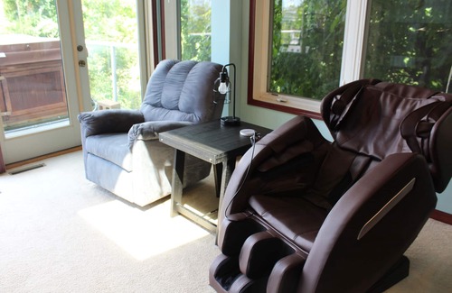 The "Miami", SURROUNDED BY WILDERNESS on 2 sides of a corner lot in a large unused wilderness park and SAND DUNES! "PRIVATE" 8 ft. x 8 ft. HOT TUB ( Available All Year including WINTER ) STEAM ROOM with dual showers. Electronic Game room (AREA 51 & MAXIMUM FORCE 2-PLAYER SHOOTING ARCADE VIDEO Game and full-size Pac-Man machine (w/ 60 other games from the 1980s) and a Video Poker Machine. Also an Auto Racing Machine, with steering wheel and gas pedal. Pinball Machine. Games are all free except the Poker Machine. PlayStation 4. Electric MASSAGE CHAIR. . Free Soda machine w/ 4 flavors, Belgium waffles, Shaved ice machine, 3 types of Coffee machines and grinder. An on-site professional body massage by appointment at extra charge. 3 PERSON INDOOR JACUZZI/ TWO-SIDED FIREPLACE in the bedroom(not operating during summer) and living room/ 2 mountain bikes, Tandem and female cruiser (not available in winter). 2 Paddle Boards, 2 Kayaks, tandem kayak, Surf Boards,( Summer only), beach chairs, Corn Hole Toss and Spike Ball games for the beach. View the wildlife in the wilderness next to the rental at our feeding station during the daytime or on your TV through a night vision camera. Pets allowed $60 fee (please pay the pet fee on the VRBO site); shedding dogs keep brushed, uncontrolled barking not allowed, If you go out and leave your dog alone please don't leave your dog alone the first night.