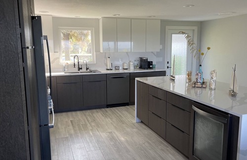 KITCHEN: Fully equipped, stainless steel appliances, blender, coffee maker, cooking basics, Wine Cooler