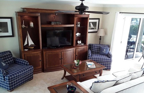 Two master bedrooms, each with an ensuite bathroom, walk-in closet and private balcony, are located on the second floor. One ensuite has a walk-in shower and the other ensuite has a glass enclosed tub/shower. Both bedrooms boast very comfortable king beds. High quality linens, bath and beach towels are provided for your stay.