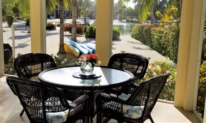 Starboard Kai, with its high end furniture, features a lovely open concept living and dining area, an office / reading nook, fully-equipped kitchen, powder room, and a large, beautiful, 2 story screened-in lanai on the main floor. The lanai is furnished with wicker dining furniture as well as a relaxing conversation set. This will be one of your favourite places to spend time.