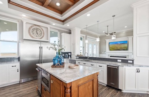 Our Viking Professional series gas stove and fully equipped kitchen will spoil even the most demanding chef. Viking Refrigerator, separate ice maker, dishwasher and trash compactor. The home's interior features 12-foot ceilings and large open spaces decorated with high end furniture. You are also able to use the elevator during your stay, elevator goes to all floors in the home.