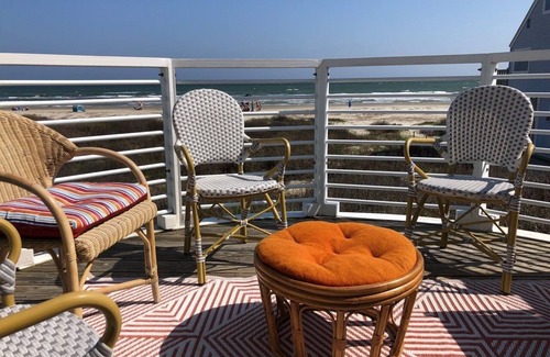 Panoramic ocean views steal the show at Beachfront Melody, where every room faces the water. Expansive wrap-around decks on the main level and a private beachfront balcony on the second floor provide front-row seats to golden sunrises and rainbow-hued sunsets over Galveston Bay. Just steps from the sand, this property offers effortless access to the beach and comes with thoughtful extras like outdoor showers, hammocks, and Adirondack chairs tucked beneath the home for breezy afternoons or festive family cookouts.