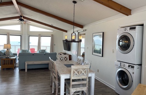 The two beachfront bedrooms have king beds and picture window views of the Gulf. One other bedroom has a king bed while the fourth bedroom has a queen bed. The sofa in the den will sleep two. All bedrooms have flat panel TVs with cable service and Netflix with your own account, and free wifi capable of streaming multiple devices.