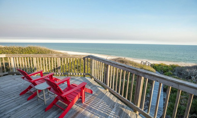 Downstairs, a private boardwalk to the beach gives easy access to playing on the white sandy beaches of St. George Island, shore fishing for the days catch or a relaxing evening walk on the beach to watch the day's sunset (many of which are just spectacular!). There is a private outdoor shower for a quick cleanup after a day on the beach. A fish cleaning sink with running water to clean the catch of the day. Several beach chairs and a beach umbrella are supplied.