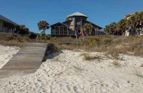 Escape the craze and join us for a relaxing stay at DuneStruck on St George Island. The home was built by one of the areas renowned builders and fully renovated in 2015 and featured in the 2016 St George Island Tour of Homes. DuneStruck is the best of an “old world” Florida home while offering the best modern features of a renovated home. From the moment you enter the door, the tasteful wood paneling, expansive views and updated features of this home will start your vacation off right.